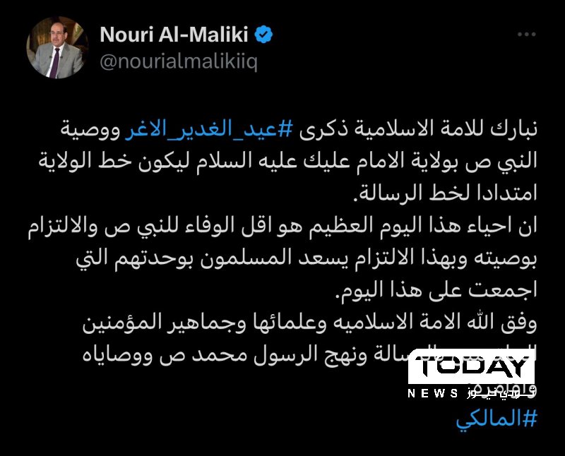 المالكي يبارك للأمة الإسلامية بذكرى عيد الغدير الأغر