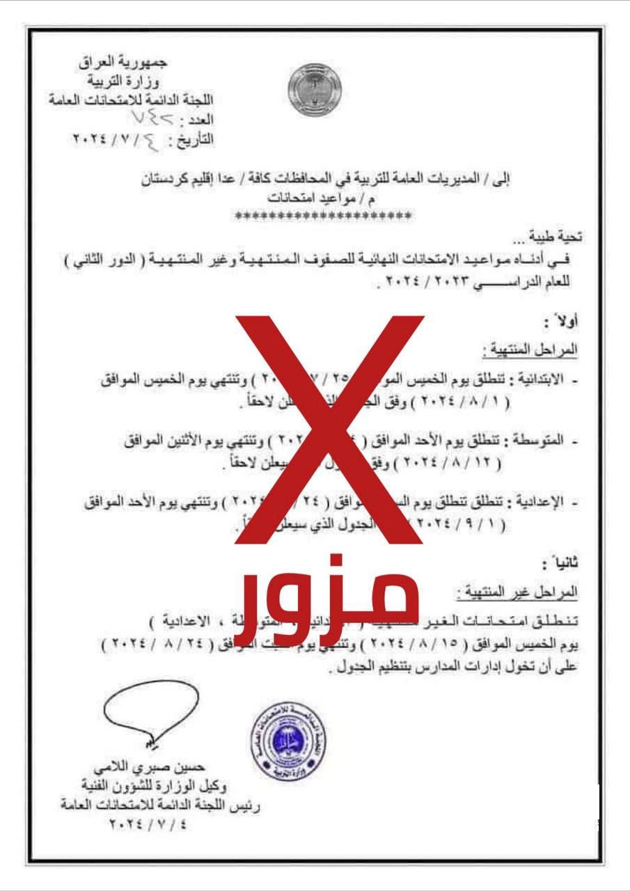 التربية تنفي تحديد مواعيد الامتحانات للصفوف المنتهية