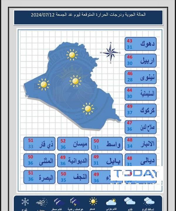 وسجلت محافظات عدة درجات حرارة مرتفعة وكانت أعلاها في ميسان حيث بلغت وفق الانواء الجوية بنشرتها اليوم 52 مْ.