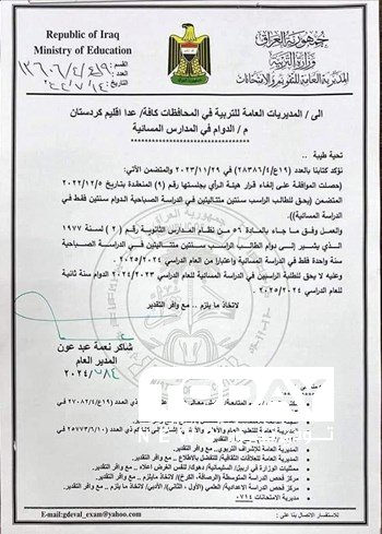 أعلنت وزارة التربية العراقية، اليوم الأحد، عن السماح للطالب الذي يرسب سنتين متتاليتين في الدراسة الصباحية بالدوام لسنة واحدة في الدراسة المسائية، وذلك اعتبارا من العام الدراسي 2025/2024.