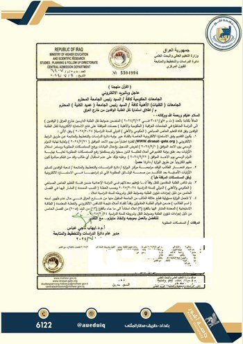 التعليم تطلق استمارة نقل الطلبة الوافدين من خارج العراق