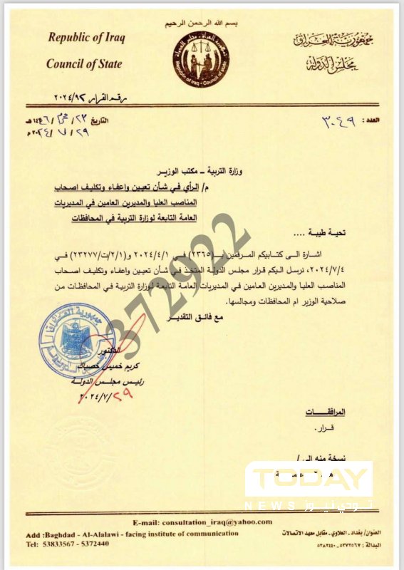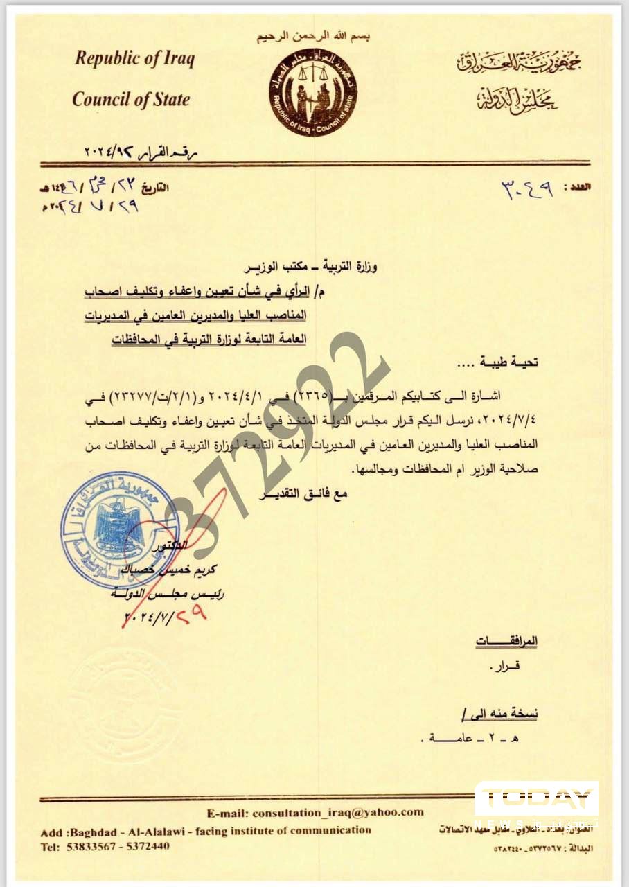 وأدناه نص قرار مجلس الدولة بشأن تعيين المدراء العامين في وزارة التربية: