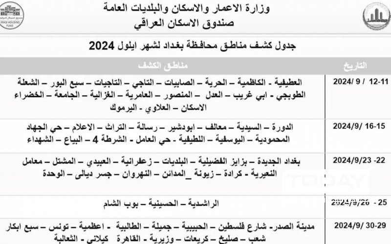 وثيقة : صندوق الإسكان العراقي يحدد مواعيد الكشف في مناطق بغداد